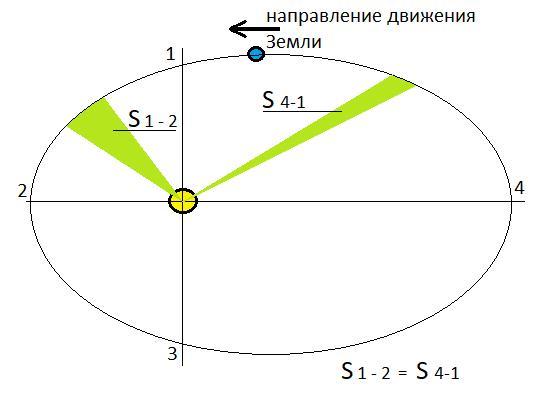 Земля, двигаясь по орбите, то приближается к Солнцу, при этом её орбитальная скорость возрастает, и в перигелии (на минимальном расстоянии от Солнца, точка 2) орбитальная скорость становится максимальной, то удаляется от Солнца. При этом орбитальная скорость Земли уменьшается и в афелии (на максимальном удалении от Солнца, точка 4), орбитальная скорость Земли становится минимальной. Лето в северном полушарии наступает тогда, года Земля находится максимально далеко от Солнца, т.е. в афелии. При этом по орбите Земля движется с минимальной, или близкой к минимальной скоростью. Причем движется Земля до момента равноденствия (до начала осени, точка 1) не четверть орбиты, а заметно большее расстояние. В точке 1 в северном полушарии заканчивается лето и наступает осень, а в южном полушарии заканчивается зима и наступает весна. В точке 2 в южном полушарии наступает лето. А от точки начала лета в южном полушарии (точка 2) до точки начала осени (точка 3) на этом рисунке расстояние заметно меньше чем расстояние от точки 4, начала лета в северном полушарии, до точки 1 начало осени в северном полушарии. Да к тому же расстояния эти Земля проходит с разными скоростями. Меньшее расстояние от точки 1 до 2 и далее до 3 (лето в южном полушарии) проходит с большей скоростью, а большее расстояние от точки 3 до 4 и далее до 1 (лето в северном полушарии) проходит с меньшей скоростью. Вот все это и приводит к тому, что лето в северном полушарии более продолжительное, чем в южном полушарии. Что касается закона, с помощью которого все это можно доказать, то я бы несколько изменил формулировку вопроса. Закон этот – второй закон Кеплера, вовсе не доказывает, а объясняет реально существующий в природе факт. И формулируется этот закон так: Радиус-вектор, соединяющий планету и Солнце, описывает за равные промежутки времени равные площади. Т.е. этот закон объясняет, а не доказывает, что при приближении Земли к перигелию её скорость возрастает, а при удалении от перигелия и приближении к афелию, скорость Земли уменьшается. Повторяю, этот закон не доказывает, а объясняет реально существующий закон природы.