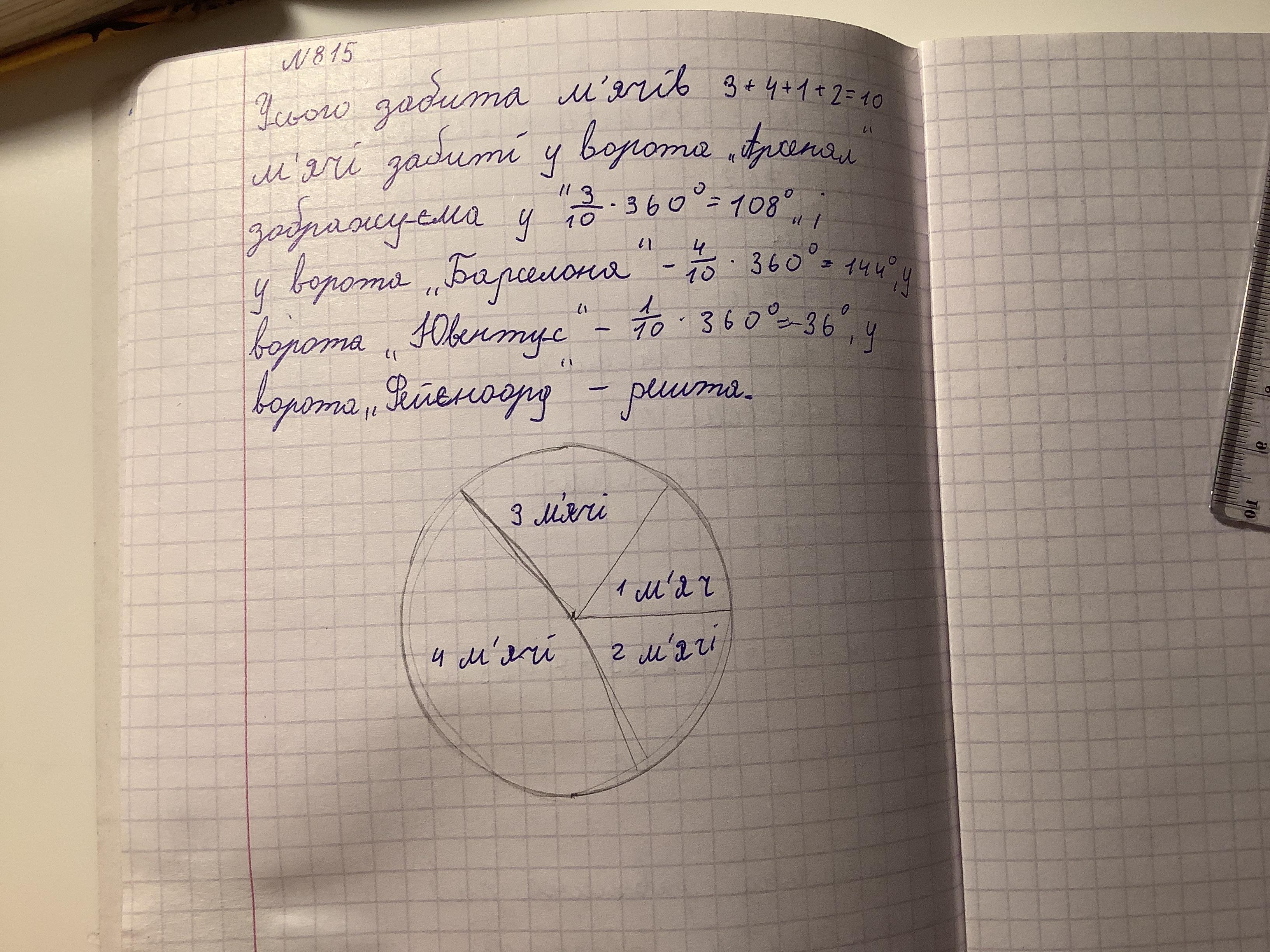 Накресли кругову діаграму розподілу кількості м'ячів, забитих командою "Динамо": у ворота команди "Арсенал" --- 3 м'ячі, "Барселоне" ---- 4 м'ячі, "Ювентус" ---- 1 м'яч, "Фейєноорд" --- 2 м'чі.