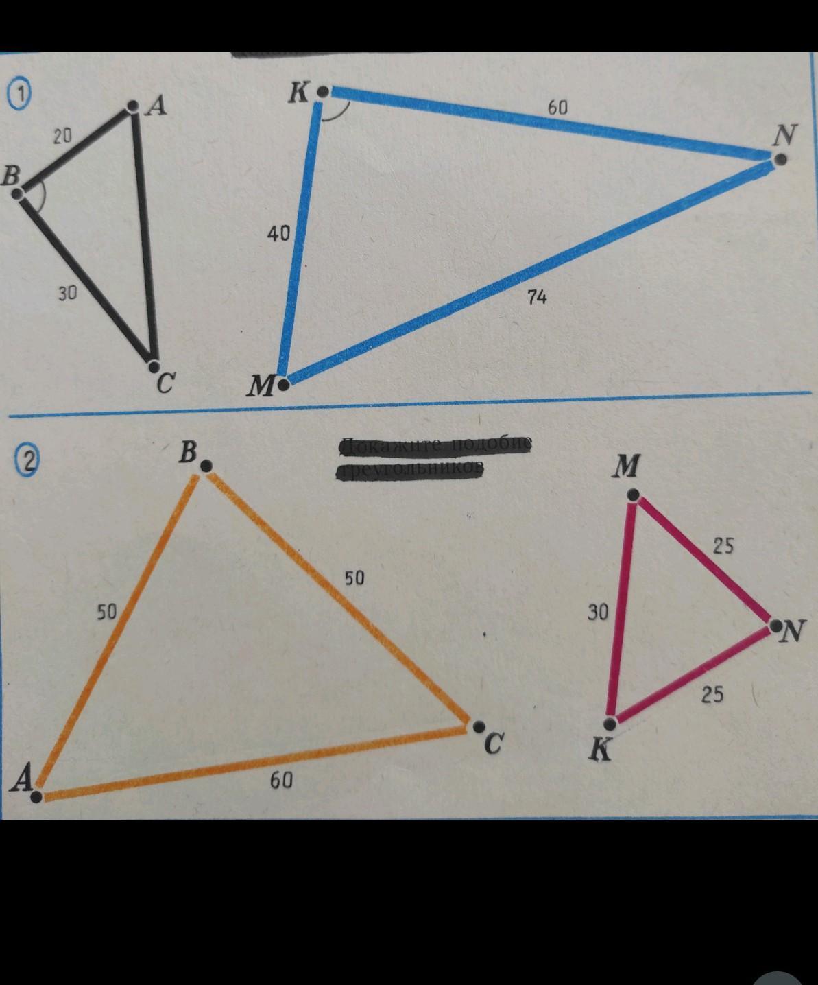 1) тут трикутники подібні тому, що 20:30:37=40:60:74