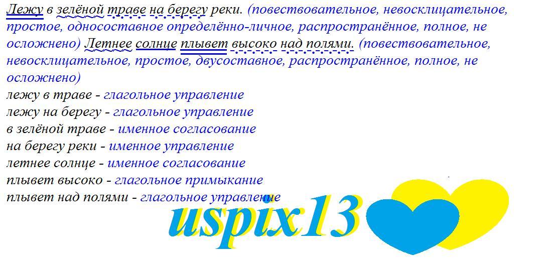 !40Б! Не знаете не оставляйте ответ пожалуйста!ПОЖАЛУЙСТА ПОМОГИТЕ! Лежу в зелёной траве на берегу реки. Летнее солнце плывет высоко над полями.
