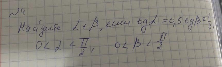 tg( α + β ) = 1 i α , βЄ І чверті , тому α + β = π/4 .
