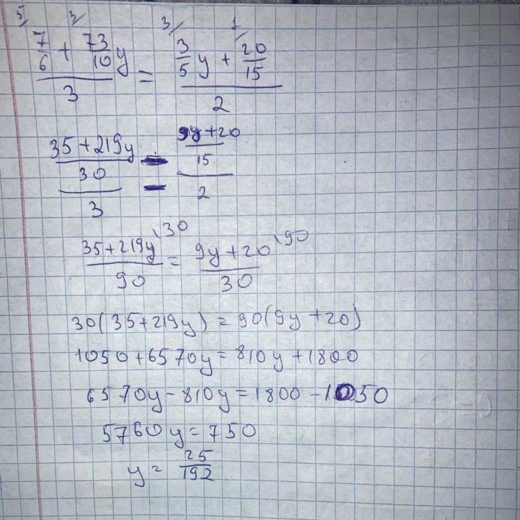 2 * (7/6 + 7,3y) = 3 * (0,6y + 20/15)