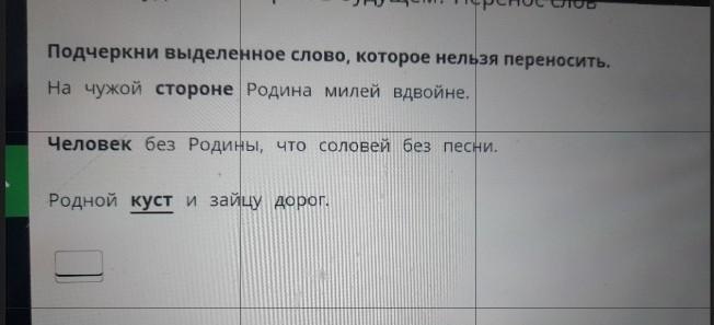 подчеркни выделенные слова которые нельзя переносить. На чужой строне Родина милей вдойне.