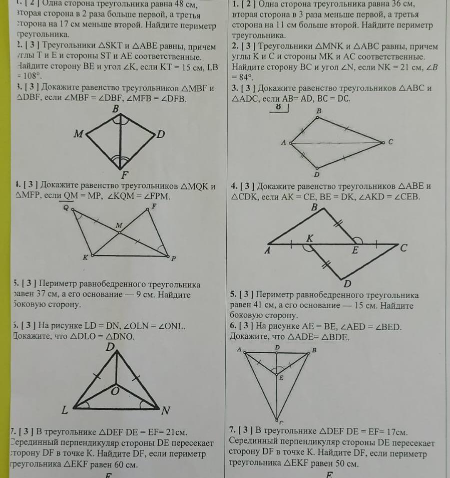 3. [ 3 ] Докажите равенство треугольников ДМBF и