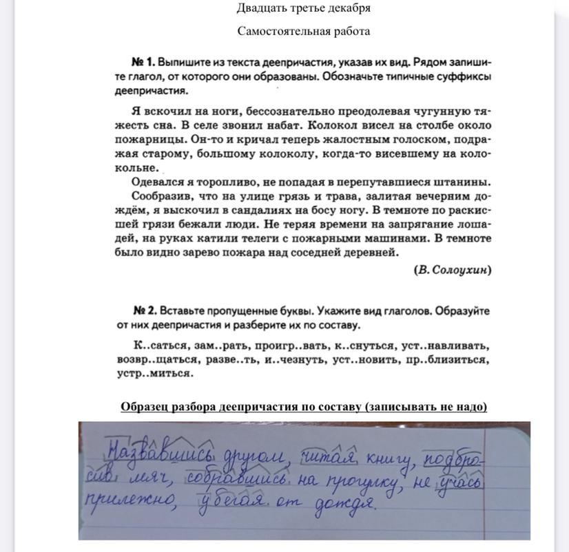 1. Выписать деепричастия; указать их вид и глагол, от которого они образованы; обозначить суффиксы деепричастий:
