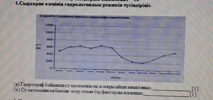 (а) Гидрограф бойынша ең жоғарғы су көлемі сәуір айында тіркелген.