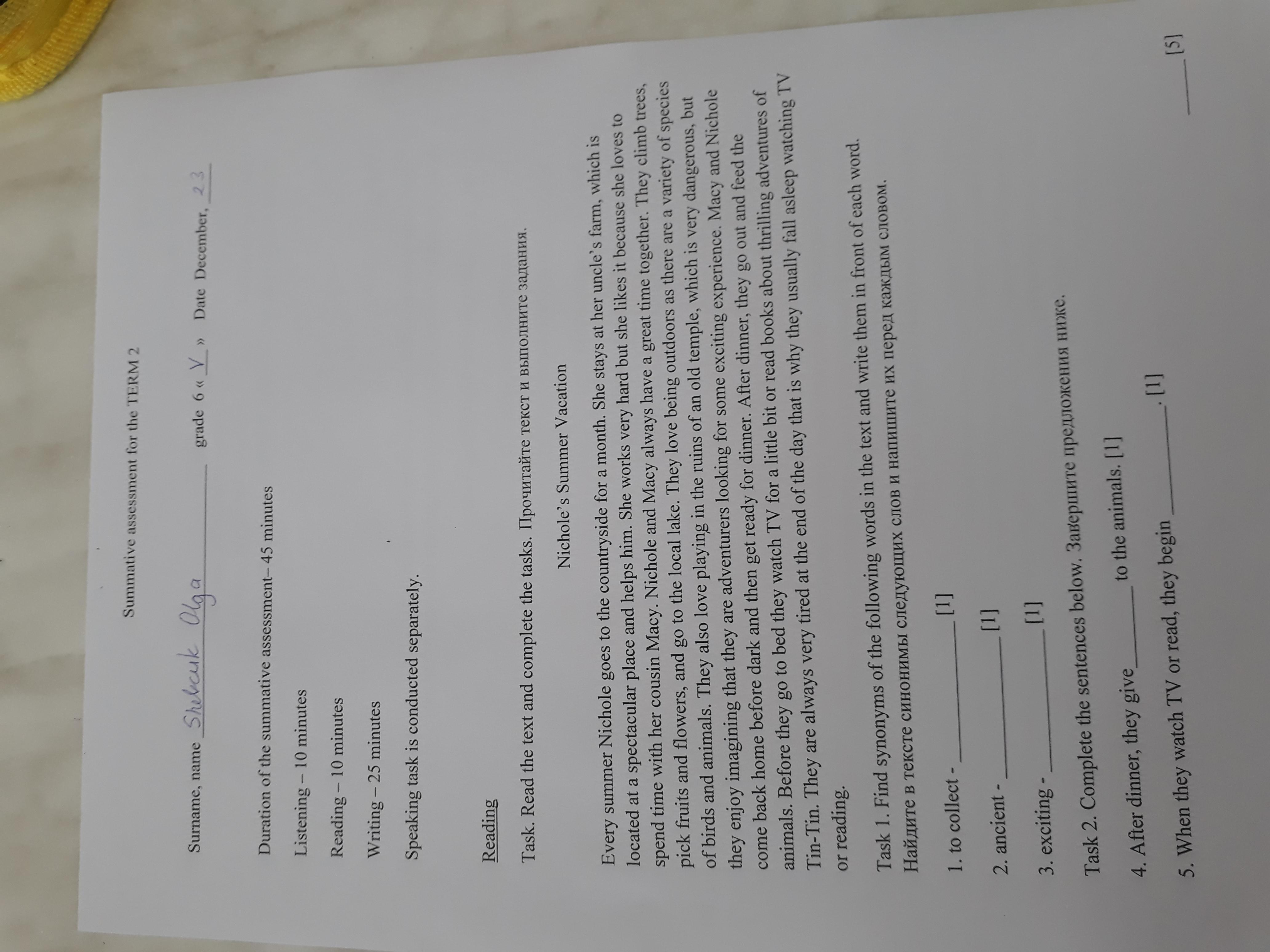 1.pick 2.old 3.thrilling 4.food 5. to sleep