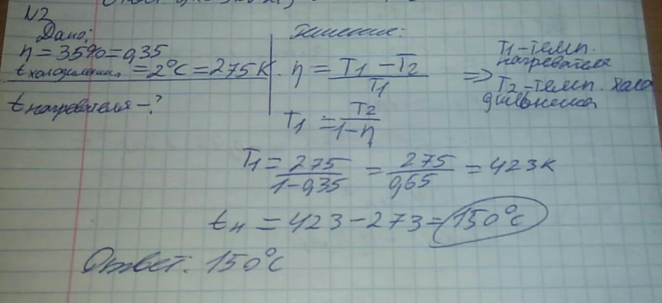 4. КПД идеальной тепловой машины 35%. Какова температура