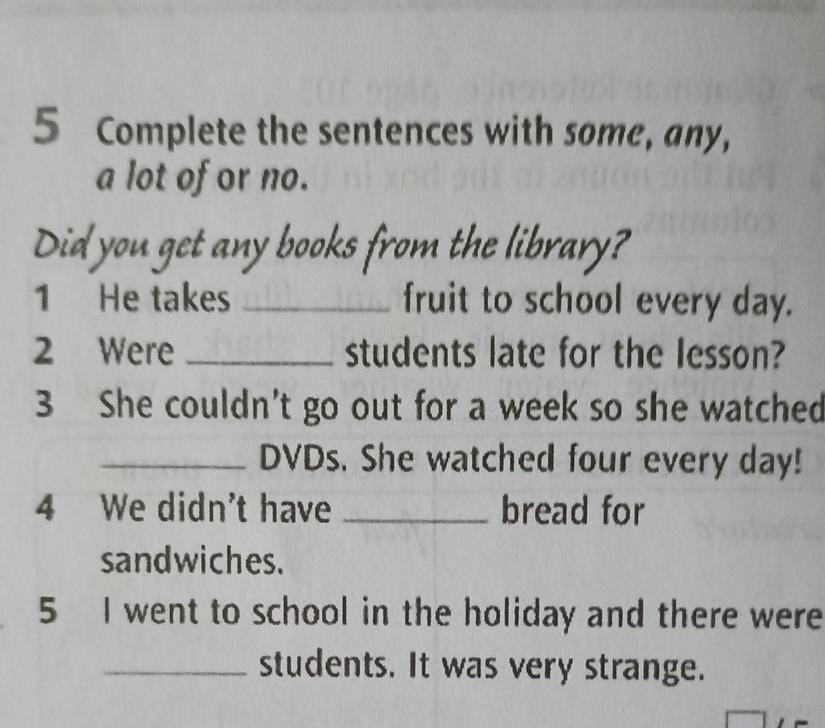 5 Complete the sentences with some, any,
