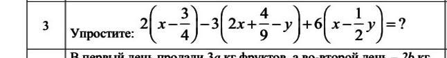 2(х - 3/4) - 3(2х + 4/9 - у) + 6(х - 1/2у) =