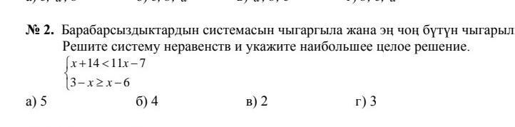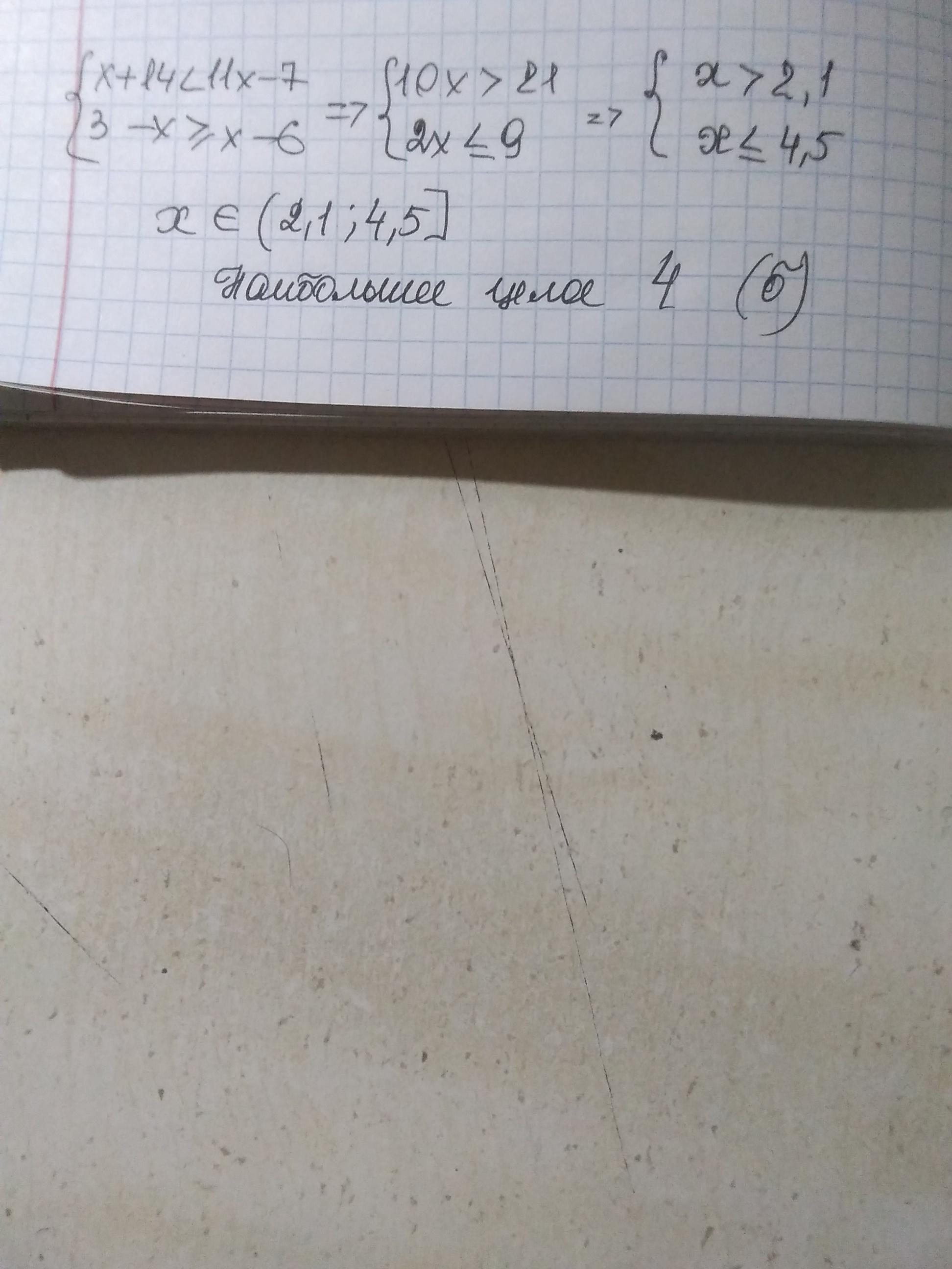 №2 . { x + 14 < 11x - 7 ; ⇒ { 11x - x > 14 + 7 ; ⇒ { 10x > 21 ; ⇒ { x > 2,1 ;