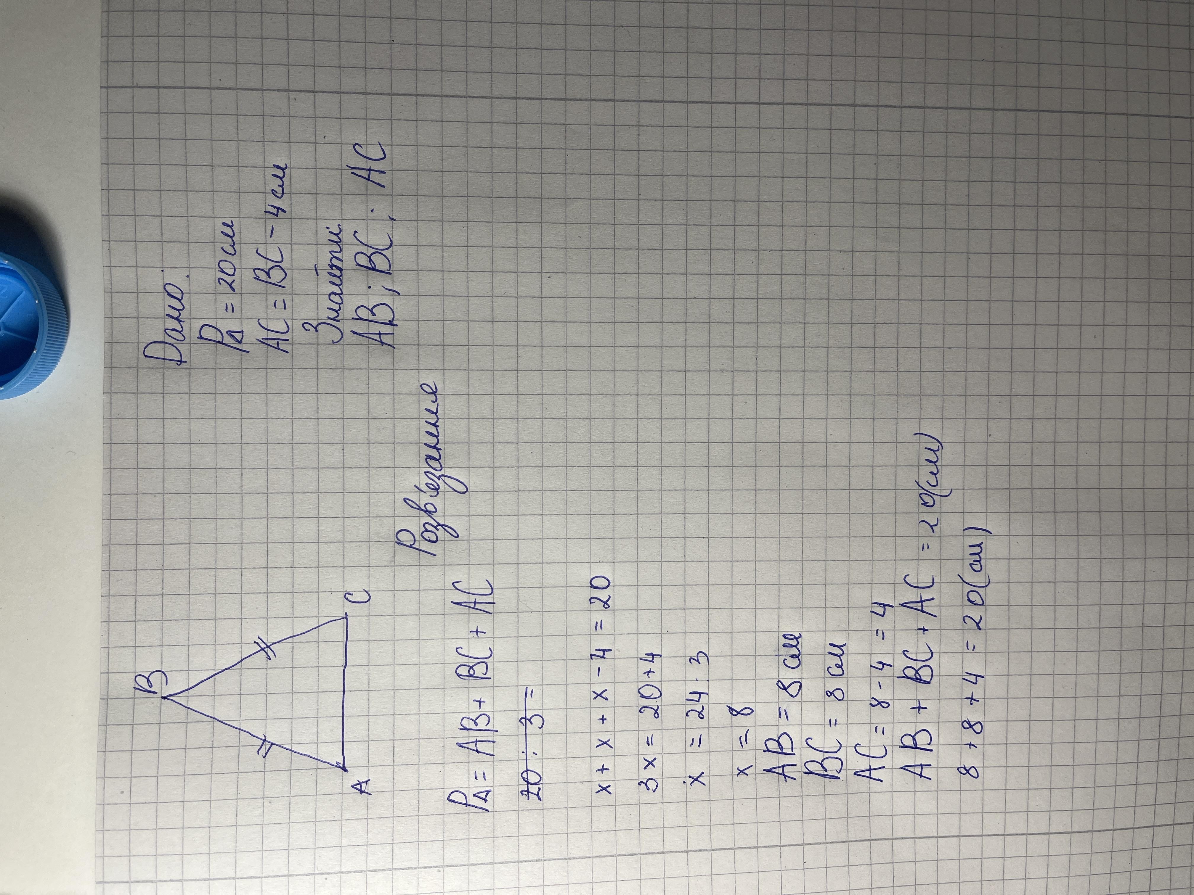 Периметр рівнбедреного трикутника дорівнює 20 см.