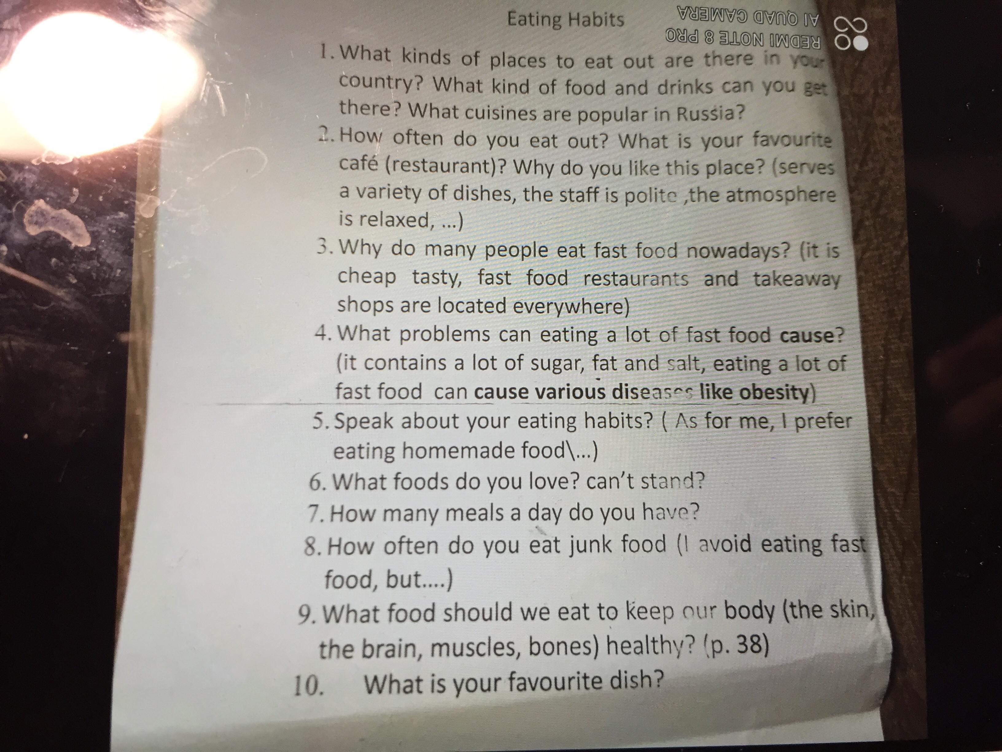 Срочно, пожалуйста, напишите сочинение на тему «Food Habits” (по плану)