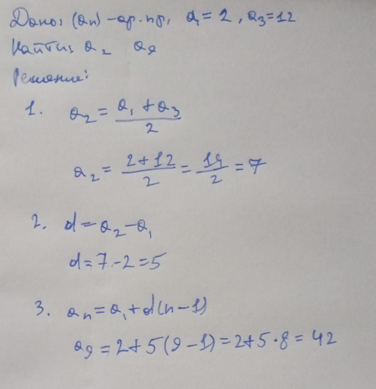 3. a9=2+5(9-1)=2+5*8=42