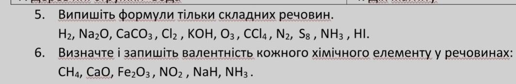 В 6 завданні-вчимо валентність ,потім помножуємо на кількість атомів того чи іншого елемента(тільки валентність пишіть латинськими цифрами)