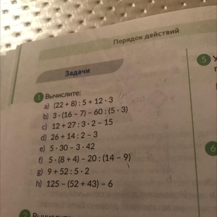 а) (22+8):5+12•3; первое действие в скобках