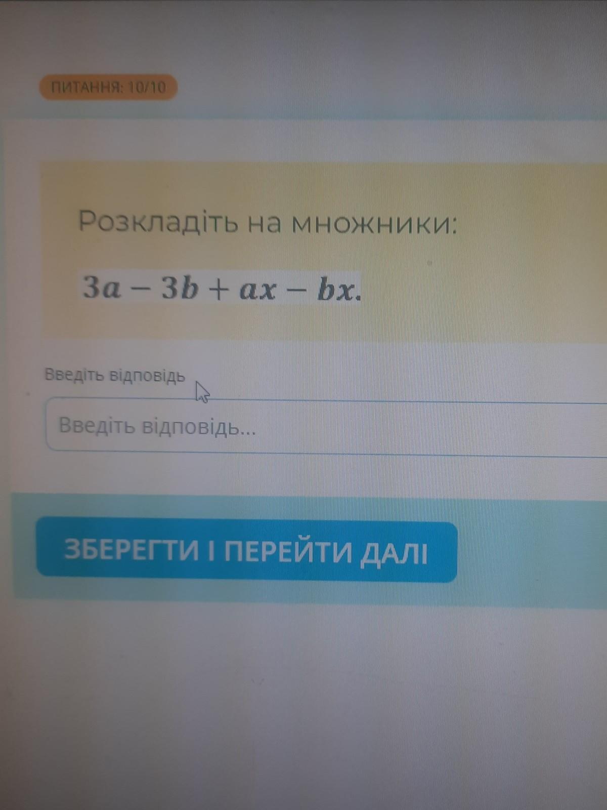 3а-3b+ax-bx=3(a-b)+x(a-b)=(a-b)(3+x)