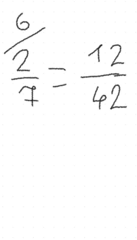 Якщо зводити 2/7 дріб до знаменника 42, то це означає, що ми просто домножимо його на 6(число на яке потрібно домножити знаменник, для отримання бажаного результату). Отже знаменник дробу стає числом 42, а чисельник стає числом 2 помноженим на 6, тобто 12.