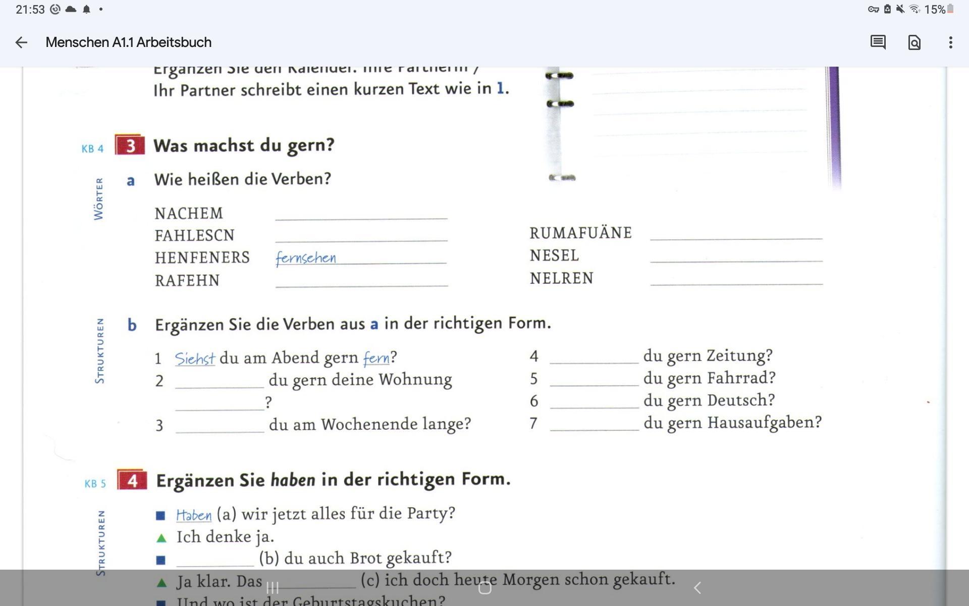 4 Liest. 5 Fährst. 6 lernst. 7 machst