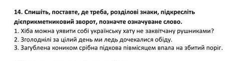1) Хіба можна уявити собі українську хату, не заквітчану рушниками? 2) Зголоднілі за цілий день, ми ледь дочекалмся обіду.