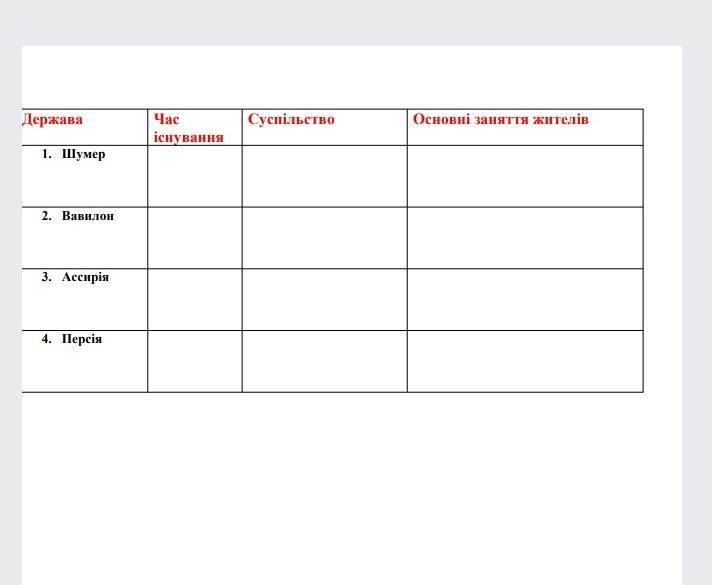 Держава 1. Шумер 2. Вавилон 3. Ассирiя 4. Персія Час iснування Суспільство Основні заняття жителів