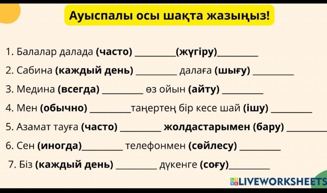 4. мен әдетте таңертең бір кесе шай ішемін.