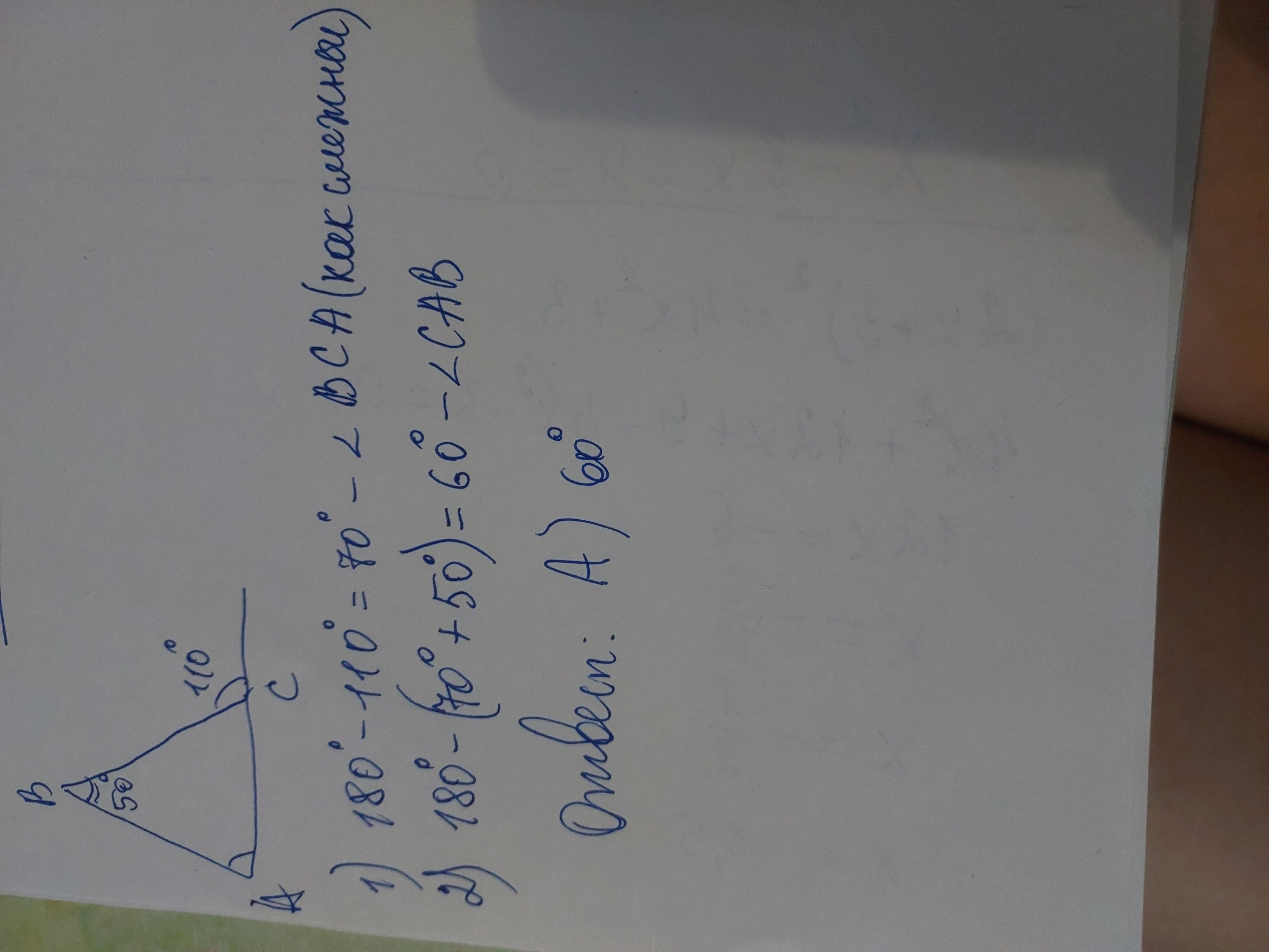а)60.Сумма сторон 180градусов.угол с равен 70 360-110-180=70.Угол 180-70-50=60
