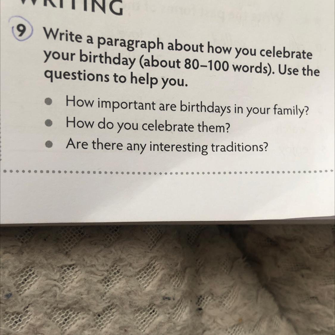 Задание 9. Написать на английском- насколько важны дни рождения в вашей семье как ты их празднуешь есть ли интересные традиции