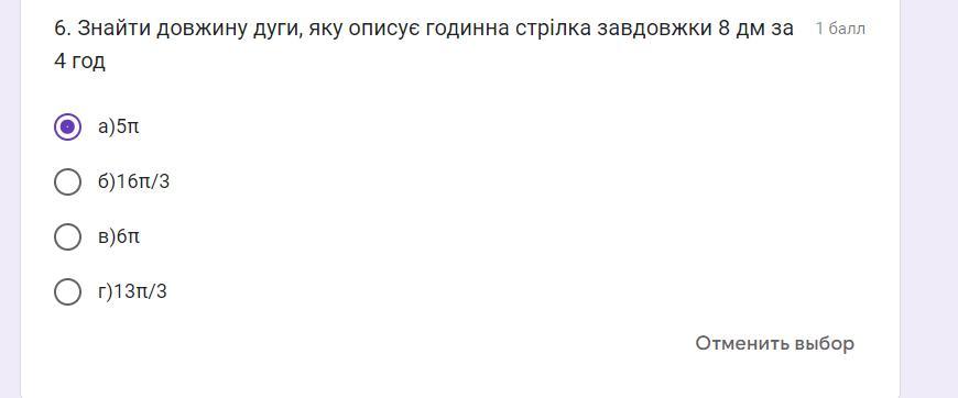 Длина дуги часовой стрелки длиной 8 дм за 4 часа