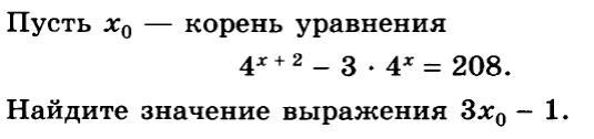 Решите уравнение 4^(x+2) - 3 * 4^(x) = 208 с корнем x0.
