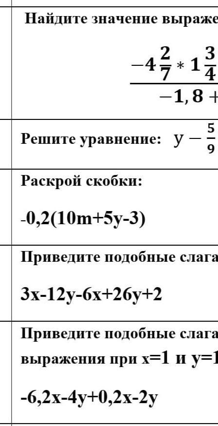 -0,2(10m + 5y - 3) = -2m - у + 0,6