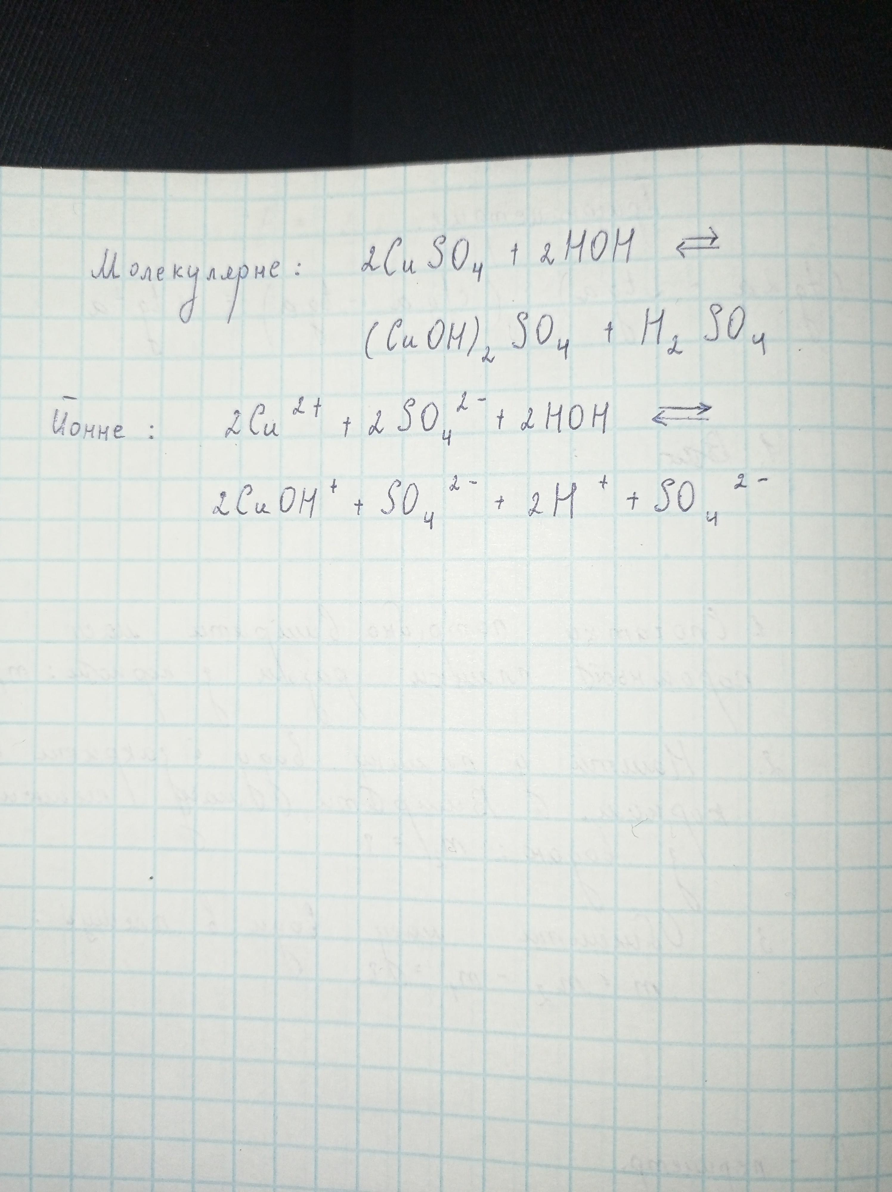 Напишіть рівняння реакції гідролізу купрум(ІІ) сульфату у молекулярному та йонному вигляді.