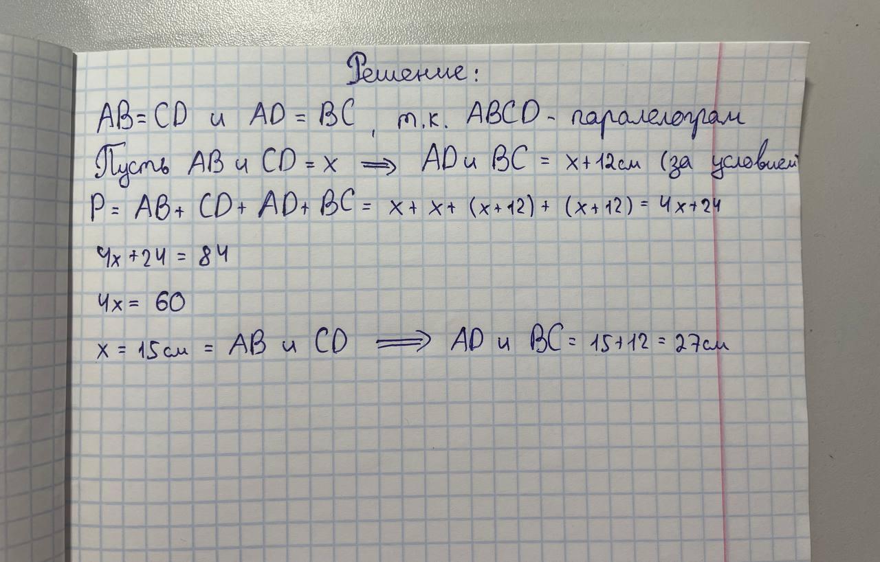 Тогда AD и BC = x + 12см (за условием задачи)