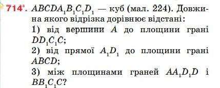 ПИСЬМЕННО !!!!!!!! ПИСЬМЕННО !!!!!!!! ПИСЬМЕННО !!!!!!!! ABCDA1B1C1D1 — куб (мал. 224). Довжина якого відрізка дорівнює відстані:
