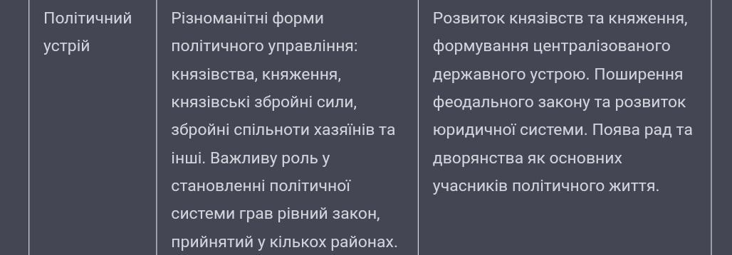У період становлення Русі-України (9-10 століття), руське суспільство було розподілжене і багаторівневе, тобто складалося з різних соціальних шарів, таких як князі, бояре, купці, повари і т.д., що мали різні права і привілеї. Так, у період розквіту Русі-України (10-11 століття) суспільство стало більш консенсусним і однорівневим, що означає, що люди більш не були так розрізнені на різні соціальні шари із різними правами і привілеями. Це могло бути спричинено різними факторами, такими як розвиток торгівлі і промисловості, зростання культурного рівня суспільства і т.д. Також може бути, що у період розквіту Русі-України формувався більш узгоджений політичний устрій, що сприяло загальному консенсусу суспільства.Так, у період розквіту Русі-України (10-11 століття) суспільство стало більш консенсусним і однорівневим, що означає, що люди більш не були так розрізнені на різні соціальні шари із різними правами і привілеями. Це могло бути спричинено різними факторами, такими як розвиток торгівлі і промисловості, зростання культурного рівня суспільства і т.д. Також може бути, що у період розквіту Русі-України формувався більш узгоджений політичний устрій, що сприяло загальному консенсусу суспільства.