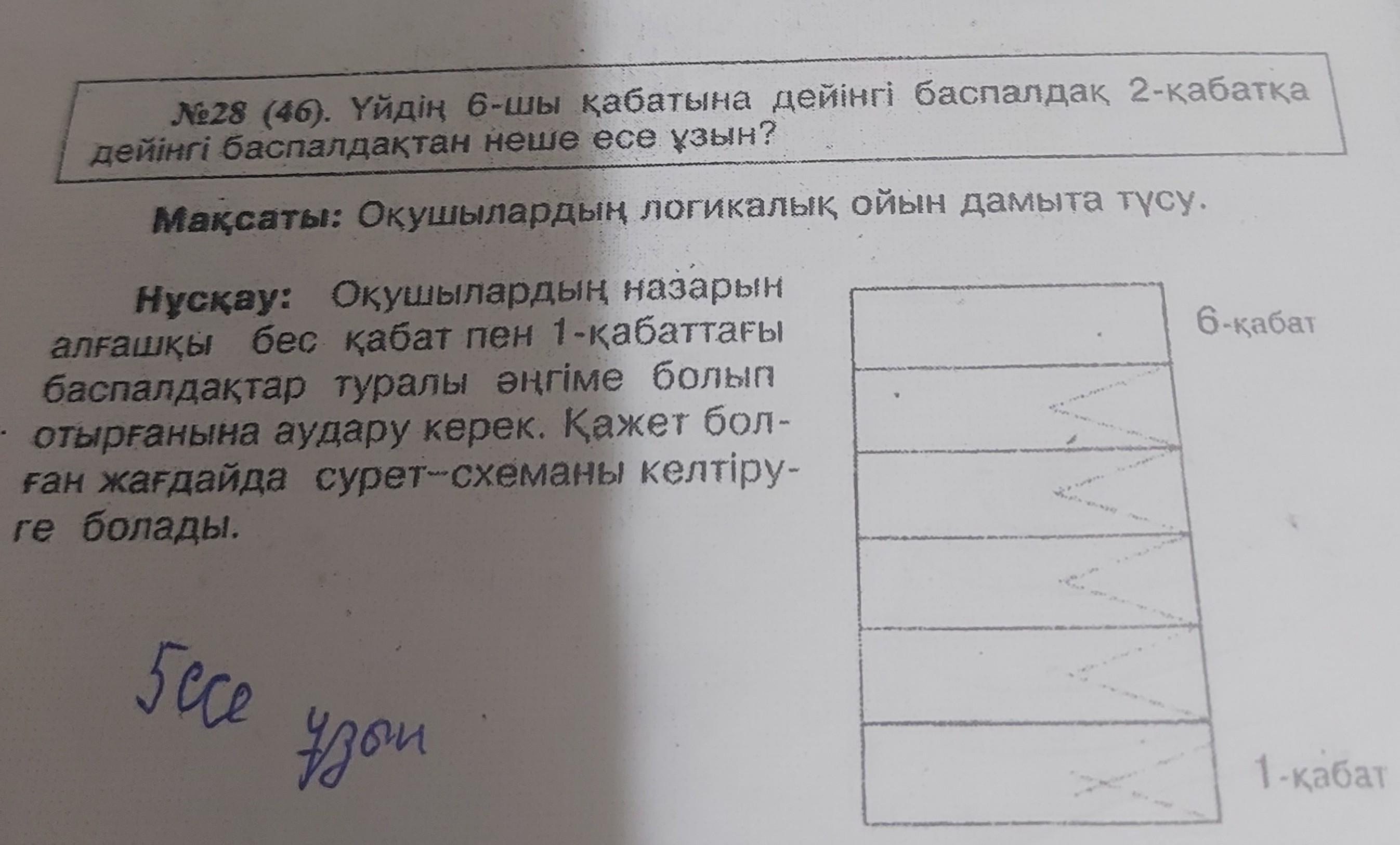Баспалдақтардың ұшу санын есептеу қажет. Үйдің 6-қабатына апаратын баспалдақ 2-қабатқа апаратын баспалдақтардан 5 есе ұзын екен.
