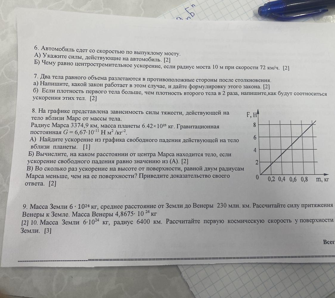Радиус Марса 33,74,9 км, масса планеты 6.42х10^23кг. СРОЧНО ПОМОГИТЕ ПОЖАЛУЙСТА 8 И 9 ЗАДАНИЕ