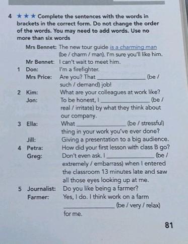 Complete the sentences with the words in brackets in the correct form. Do not change the order of the words. You may need to add words. Use no more than six words
