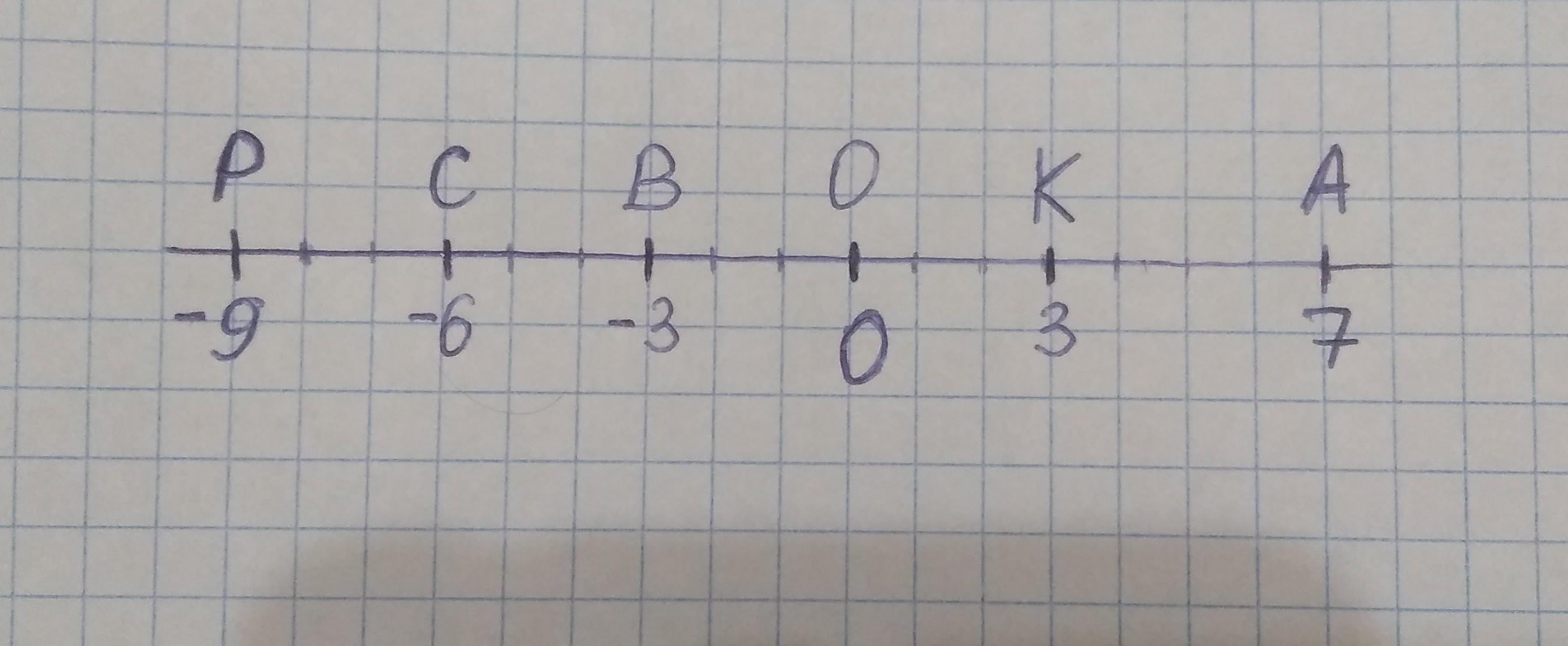 Изибразите на координатной прямой точки О(0),А(7),В(-3),С(-6),К(3),Р(-9), найдите длину отрезка АО,ВР,РА
