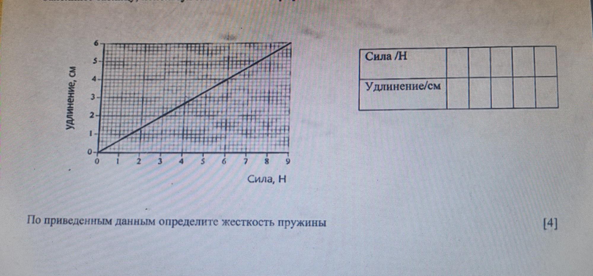 5. На приведенном ниже графике показана зависимость силы упругости от удлинения пружины. Заполните таблицу, используя зависимость на графике.