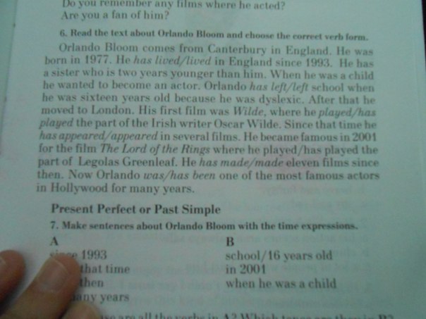 Орландо Блум из города Кэнтбюри в Англии. Он родился в 1977 г. Он жил в Англии с 1993 г. У него есть сестра, которая на 2 года младше, чем он. Когда он был ребенком, он хотел стать актером. Орландо бросил школу, когда ему было 16 лет, потому что у него была дислексия. После этого он переехал в Лондон. Его первый фильм был "Уайльд", где он сыграл роль ирландского писателя Оскара Уайльда. После этого он появился в нескольких фильмах. Он прославился в 2001 году благодаря фильму "Властелин колец", где он сыграл роль Леголаса. Он снялся еще в 11 фильмах после этого. Теперь Орландо - один из самых знаменитых голливудских актеров.