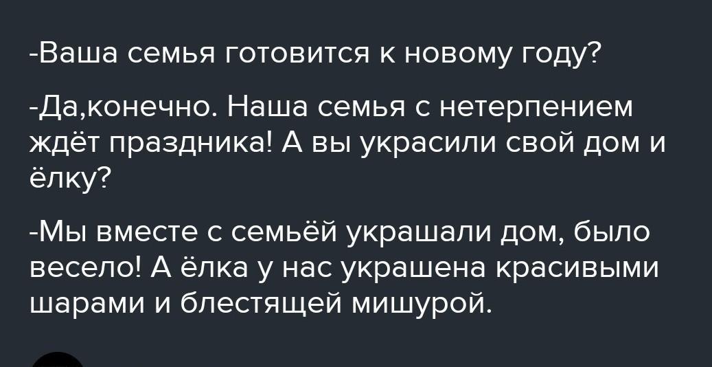 Составьте диалог на тему «Новогодние угощения». Какие блюда готовятся на Новый год в вашей семье? Есть ли в вашей семье какие-либо традиции подготовки новогоднего стола?