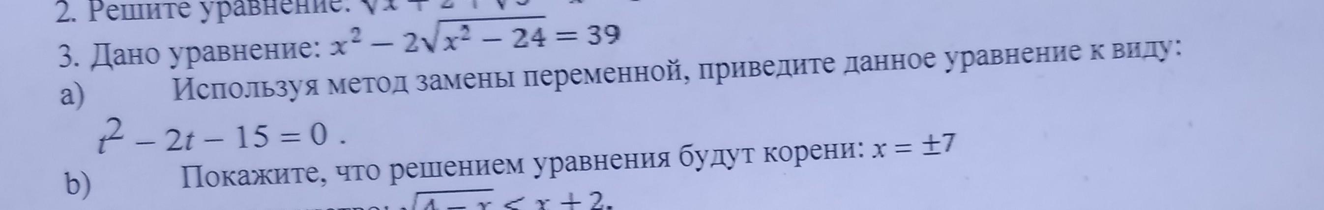 дано уравнение на котором нужно использовать метод замены. выполнить пункты а) и b)