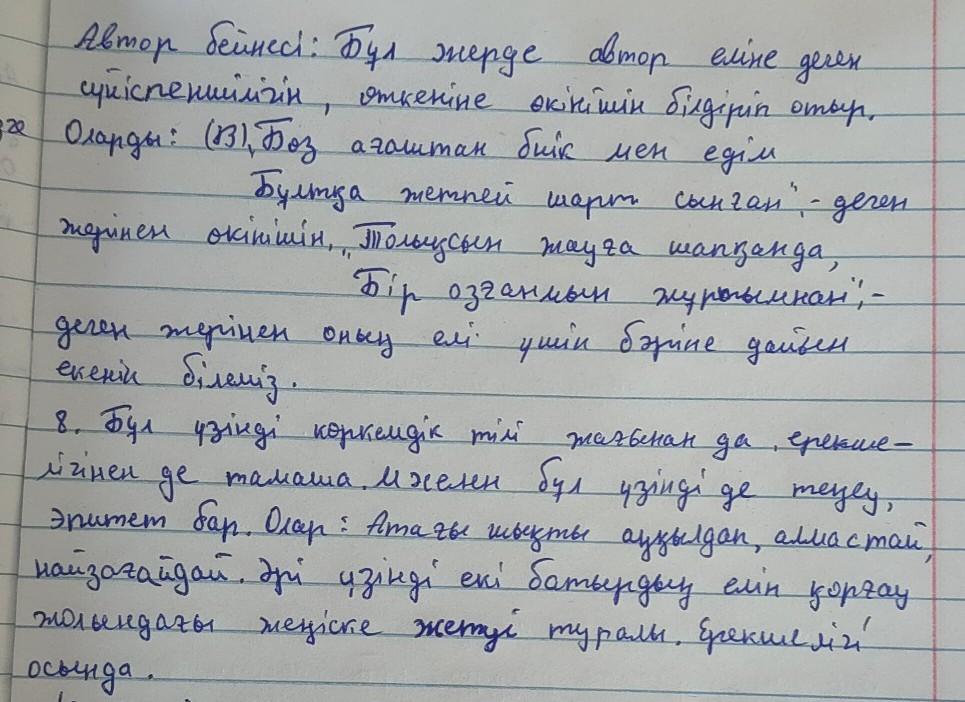 7.Кестені толтырып, автор бейнесін талдап жазыңыз. (5-6 сөйлем)