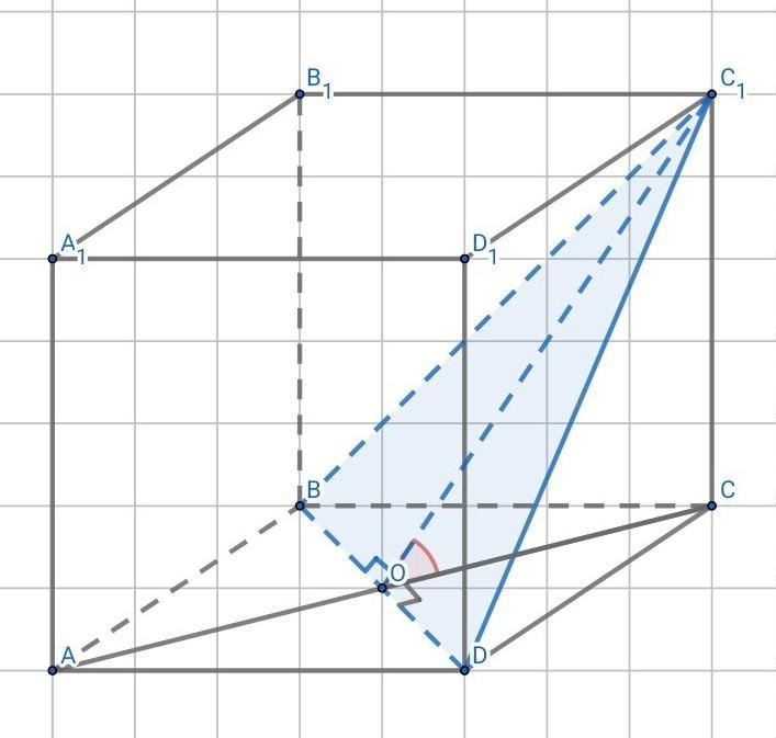 BD - линия пересечения (ABCD) и (BC₁D) . Пусть , точка O - середина BD. C₁O⊥BD , CO⊥BD , тогда , искомый. Все ребра куба возьмём за x , так как основание куба - квадрат ,то, AC - диагональ квадрата находится по формуле