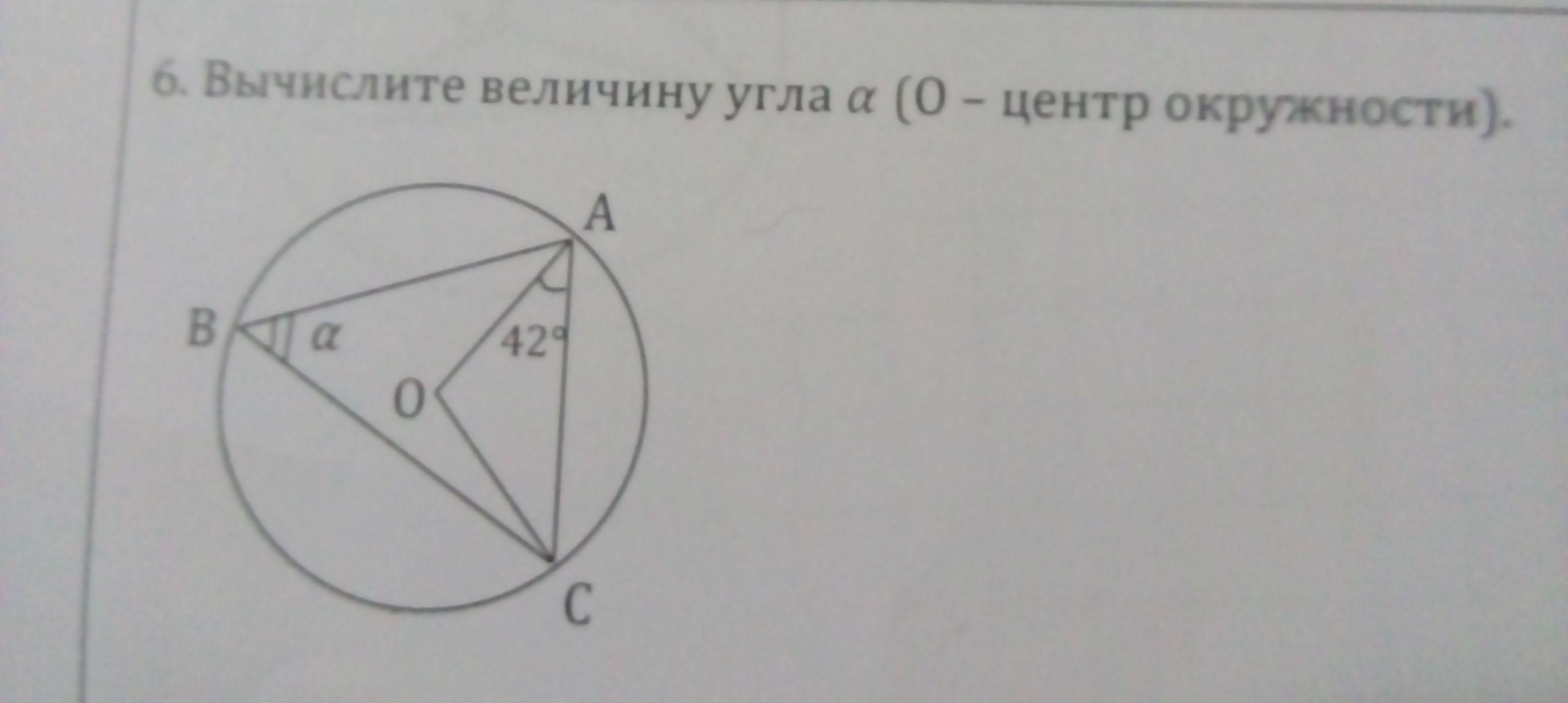 ∠ОАС=∠ОСА=42°, т.к. ∆АОС- равнобедренный треугольник АО=ОС, радиусы.