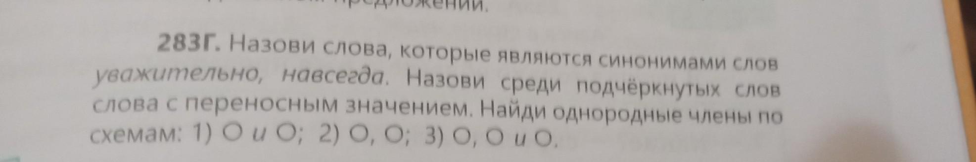 283Г. Назови слова, которые являются синонимами слов уважительно, навсегда. Назови среди подчеркнутых слов слова с переносным значением. Найди однородные члены по схемам: 1) О u 0; 2) 0,0; 3) 0, 0 u 0 ( подчёркнутые слова море, учитель, страницы) СРОЧНО!!!