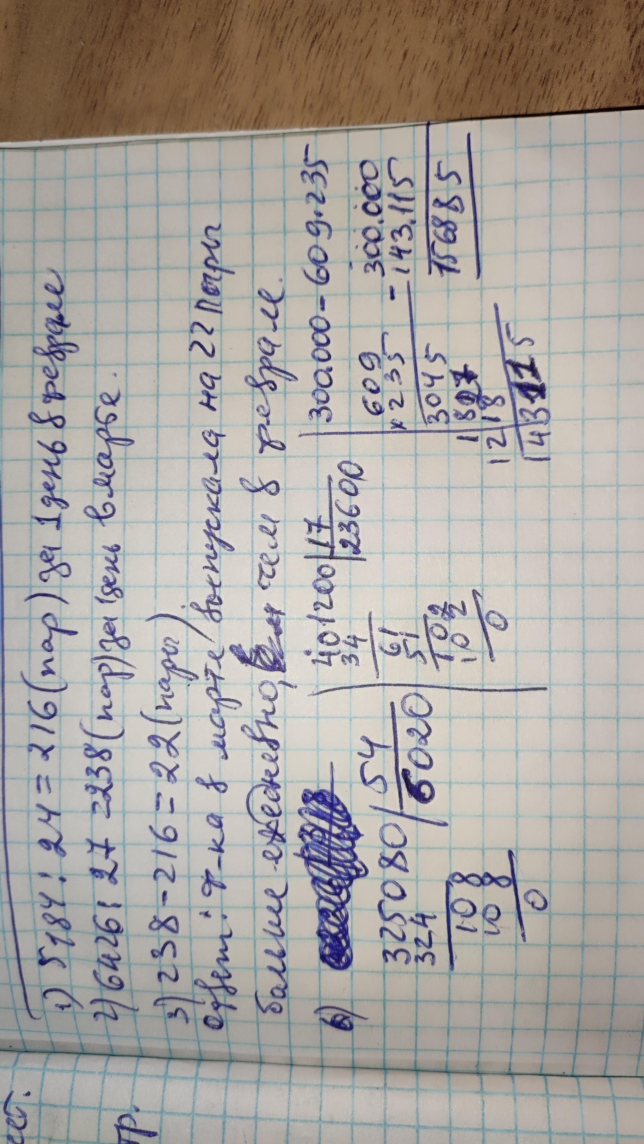 Фабрика в феврале за 24 рабочих дня выпустила 5184 пары обуви,а в марте за 27 рабочих дней выпустила 6 426 пар обуви.На сколько пар обуви больше выпускала ежедневно фабрика,в марте,чем в феврале? Вот примеры.Их столбиком сделаете пожалуйста помогите мне!!! Номер 6