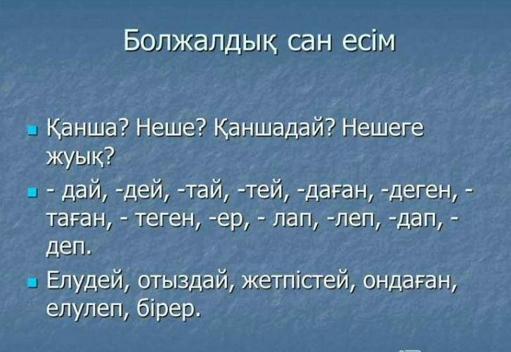 На счет болжалдық сан есім не знаю.