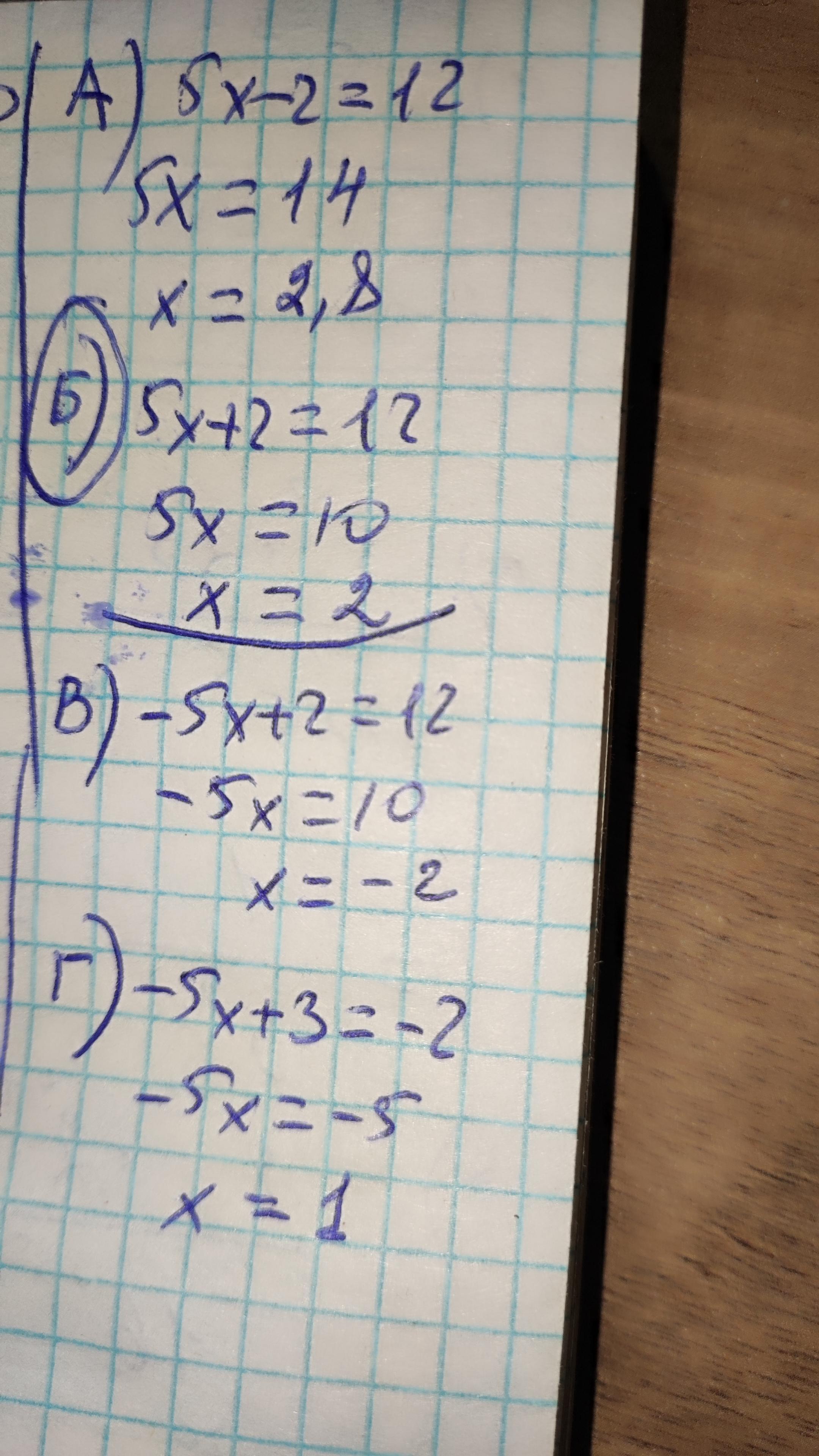 Коренем якого з рівнянь є число 2?А 5х-2=12 Б 5х+2=12 В -5х+2=12 Г -5х+3=-2 Завдання розписать срочно ..... даю лутший ответ
